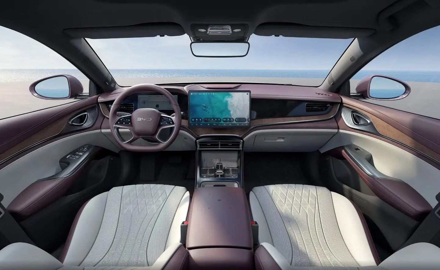 In the car, the interior of Seal DM-i is mature and dignified, and the latest four-spoke flat-bottom steering wheel is installed.